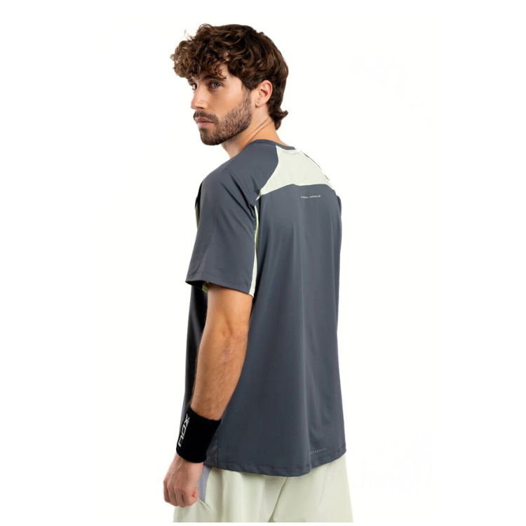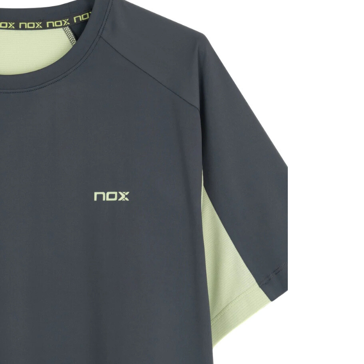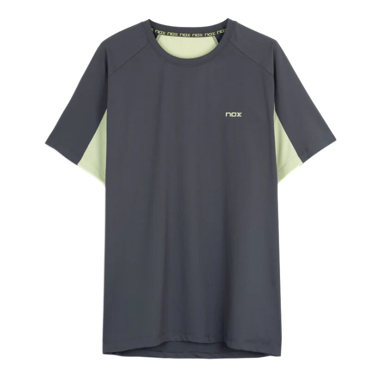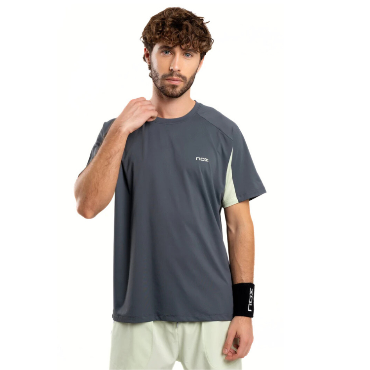 Esta camiseta presenta un elegante diseño en color gris carbón con detalles en tono claro en las mangas y el logotipo de NOX en el pecho. Con un estilo minimalista y sofisticado, es la elección perfecta para quienes buscan un look profesional y cómodo en la pista.