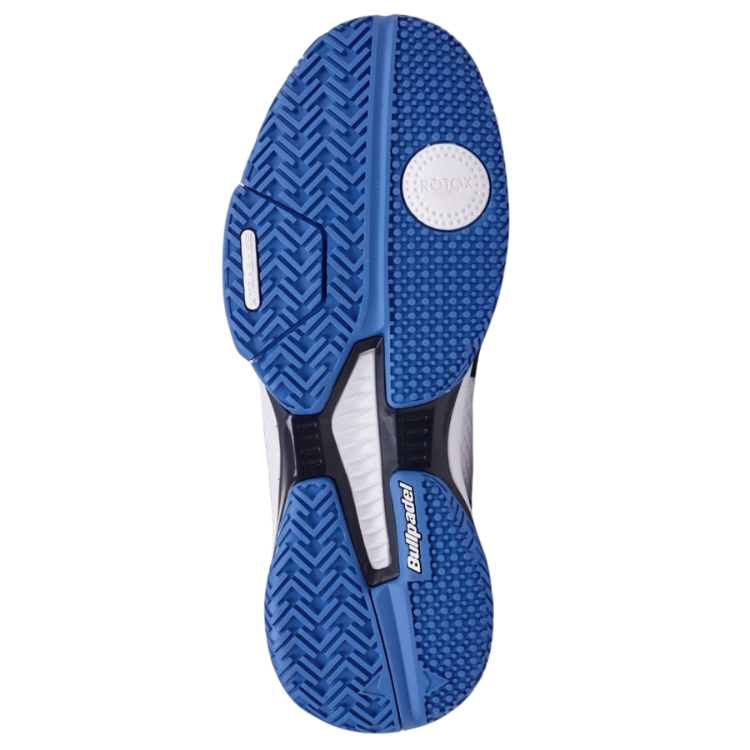 Su diseño innovador combina un corte de doble mesh sin costuras con piezas termoselladas, ofreciendo una sensación de ligereza y comodidad superior. La suela híbrida con sistema ROTOX facilita los giros rápidos y precisos, mientras que el X-TRA BASE proporciona una mayor estabilidad lateral para un juego más seguro y dinámico.