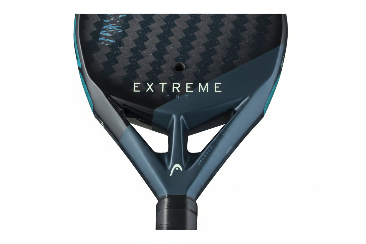 EXTREME ONE 2025, provista de la tecnología HEAD ONE para una mayor sensación con la pelota, un punto dulce superior y mayor durabilidad. Este modelo, la pala más ligera de la serie EXTREME, permite swings más rápidos y es más fácil de manejar. El molde en forma de diamante aumenta la potencia mientras que un equilibrio alto para ofrecer una mayor ventaja en los golpes por encima de la cabeza.