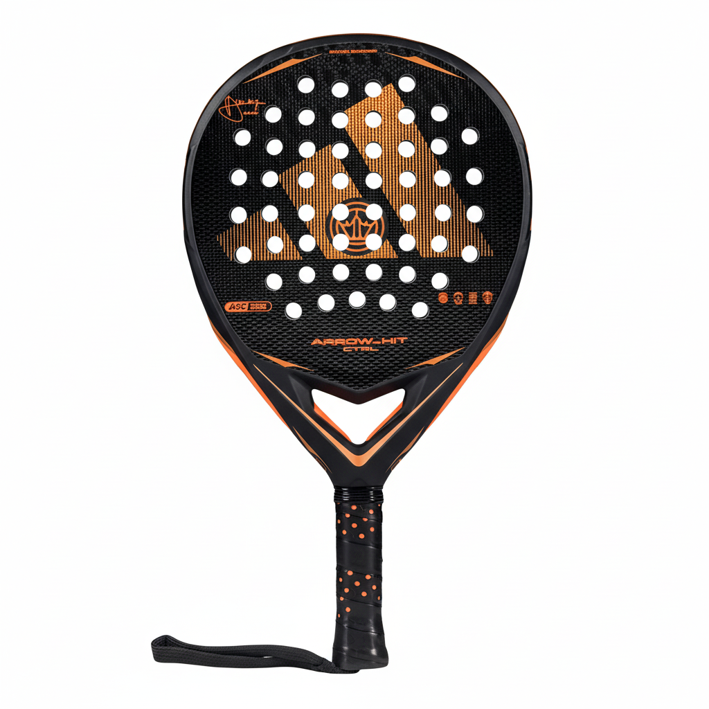 La adidas Arrow Hit CTRL 2026. El Intelligent Balance System te permite ajustar al instante peso y balance, adaptando la pala a tu ritmo y táctica para jugar con precisión en cada punto. Su estructura reforzada, combinando ASC Carbon Fiber, Structural Reinforcement y Muscle Power System, ofrece un toque estable y reactivo, aumentando la resistencia a torsiones y manteniendo cada golpe limpio y definido. El Power Groove refuerza la rigidez estructural y potencia los impactos, mientras que el Extra Power Grip mejora la aceleración en cada golpe. La goma Soft Performance EVA aporta comodidad y salida de bola consistente, y el Spin Blade Decal permite generar efecto con mayor control. Con el formato redondo, el control en golpes defensivos es más ágil, convirtiendo esta pala en la compañera perfecta para jugadores avanzados que buscan precisión, potencia y control del primer al último punto. Este año presentamos una gran novedad, la nueva cuerda de soga ajustable con una muñequera acolchada, que garantiza el máximo confort en la muñeca.