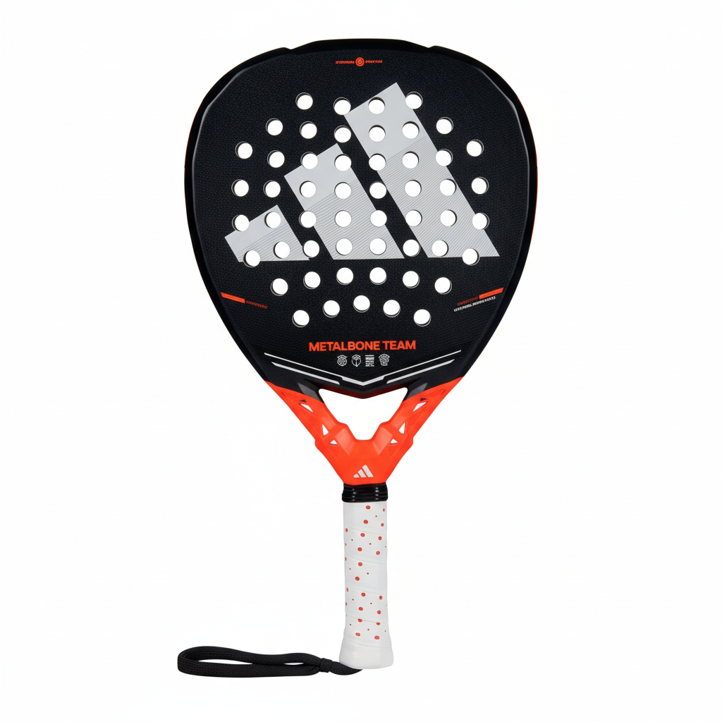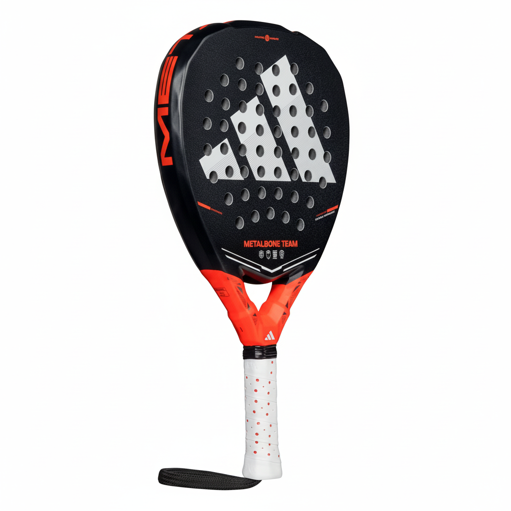 La adidas Metalbone Team 2026. Su construcción, con Octagonal Structure y diseño Low Poly, aporta rigidez y precisión, mientras que el marco reforzado ofrece impactos predecibles y controlados. La goma Soft Performance EVA y la fibra de vidrio proporcionan un tacto cómodo y una salida de bola fluida, ayudándote a centrarte en el timing, la colocación y la consistencia. El formato Diamond, con más peso en la parte superior, aumenta la inercia para golpes ofensivos más potentes, y el Spin Blade Gritt mejora el agarre de la pelota para un control óptimo. Esta pala combina estabilidad, comodidad y maniobrabilidad, apoyando tu progresión sin perder diversión, del primer rally al último. Y este año como una gran novedad incorporamos a nuestras palas una cuerda de soga ajustable para un mejor agarre en la muñeca.