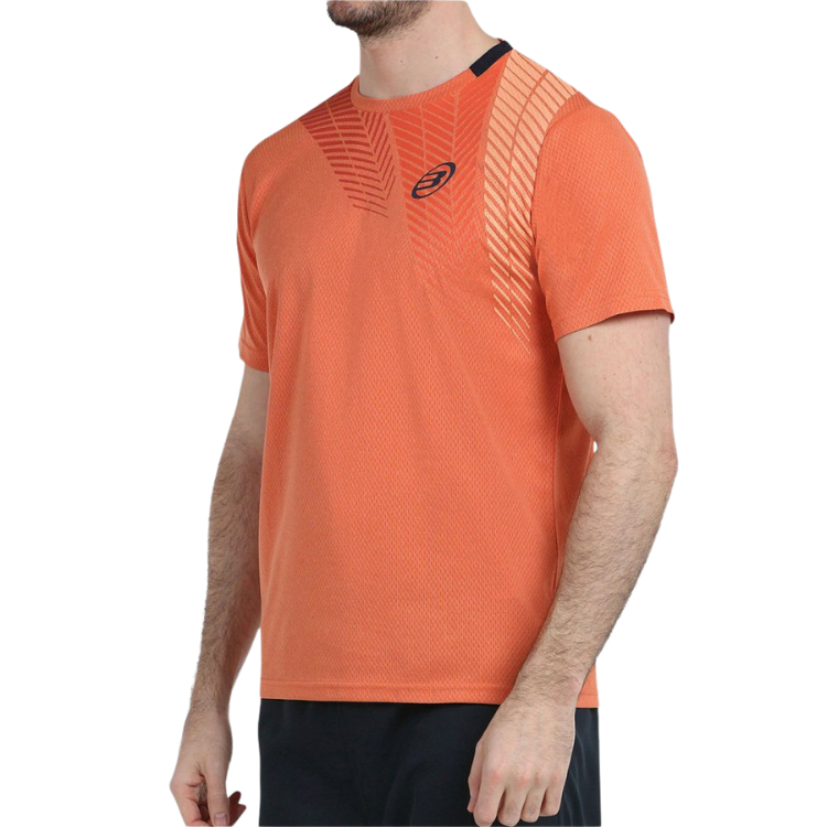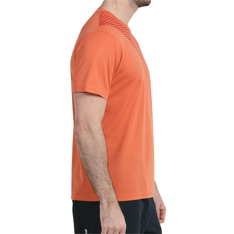 Technical t-shirt with a woven look, featuring an attractive and dynamic design on the chest and a two-tone collar detail. Made from lightweight polyester fabric with a fake mesh effect. It features a Quickerdry finish, a technology that uses microfilaments to reduce moisture and promote breathability.
