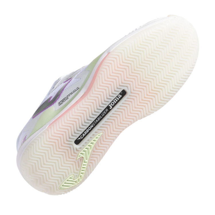 La mediasuela se ha construido en phylon, un material ligero, flexible y con alta capacidad de absorción de los impactos. Se ha colocado una placa de carbono CARBON STABILIZER en la zona del mediopié para evitar posibles torsiones de la zapatilla. Actúa como un estabilizador especialmente en cambios rápidos de dirección, asegurando un apoyo firme durante todo el juego. Al reducir el riesgo de torsiones indebidas, también ayuda a prevenir lesiones.