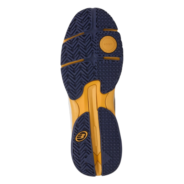 Su diseño adolece de piezas en pos de ese objetivo, que tus desplazamientos en la pista te permitan llegar a todo. Su suela es un clásico, la primera suela híbrida del mercado con el punto de giro fácil ROTOX y el sistema X-TRA BASE para una mayor estabilidad lateral, apta para todo tipo de superficies sintéticas.