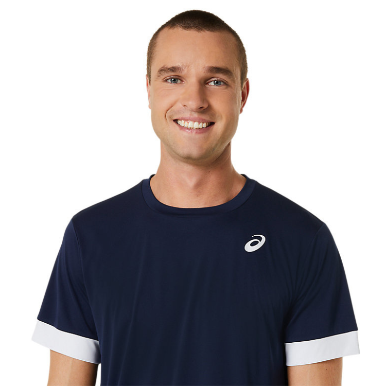 Designed for everyday play. The COURT SHORT SLEEVE TOP manages moisture with its soft, dry fabric for comfort. This tee also features a simple design that allows for striking color contrast. So enjoy the game in a must-have tee.