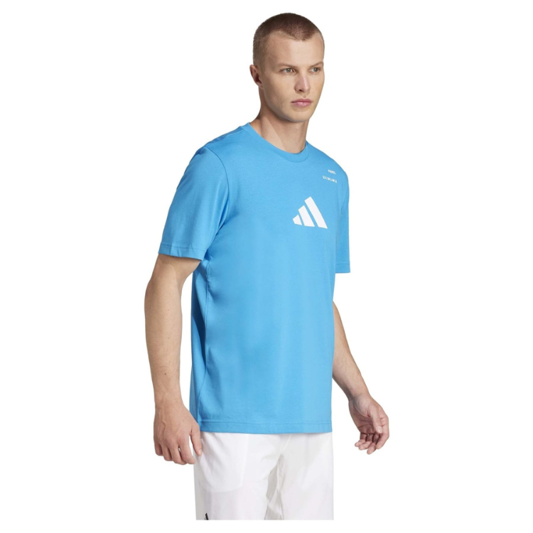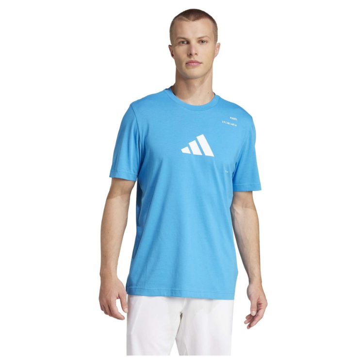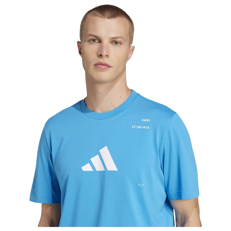 Dominate the court. This men's printed t-shirt helps keep you dry and comfortable with sweat-wicking AEROREADY. The bold graphic adds a touch of energy to your game, whether it's padel or tennis. Get ready for Game On.
