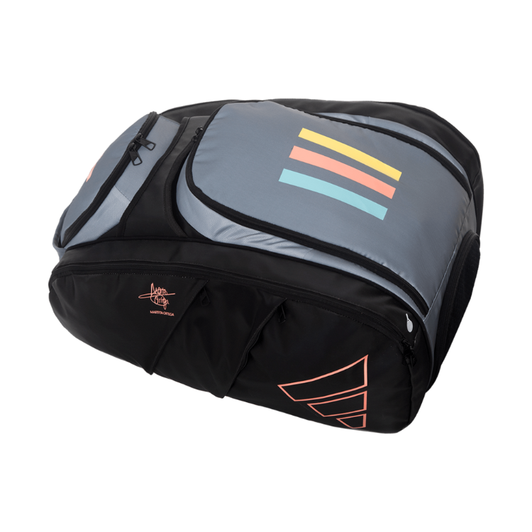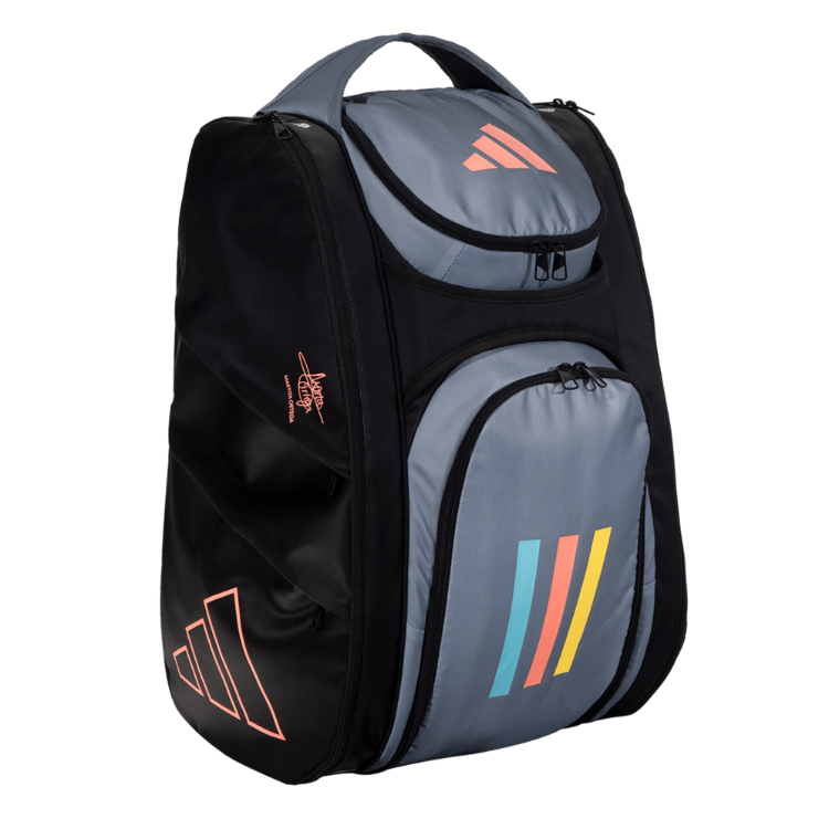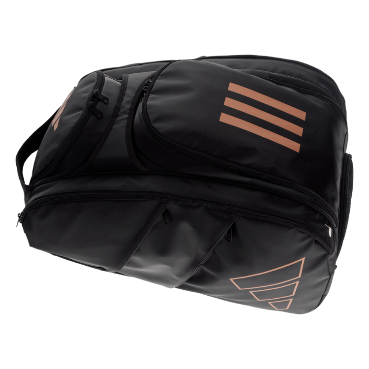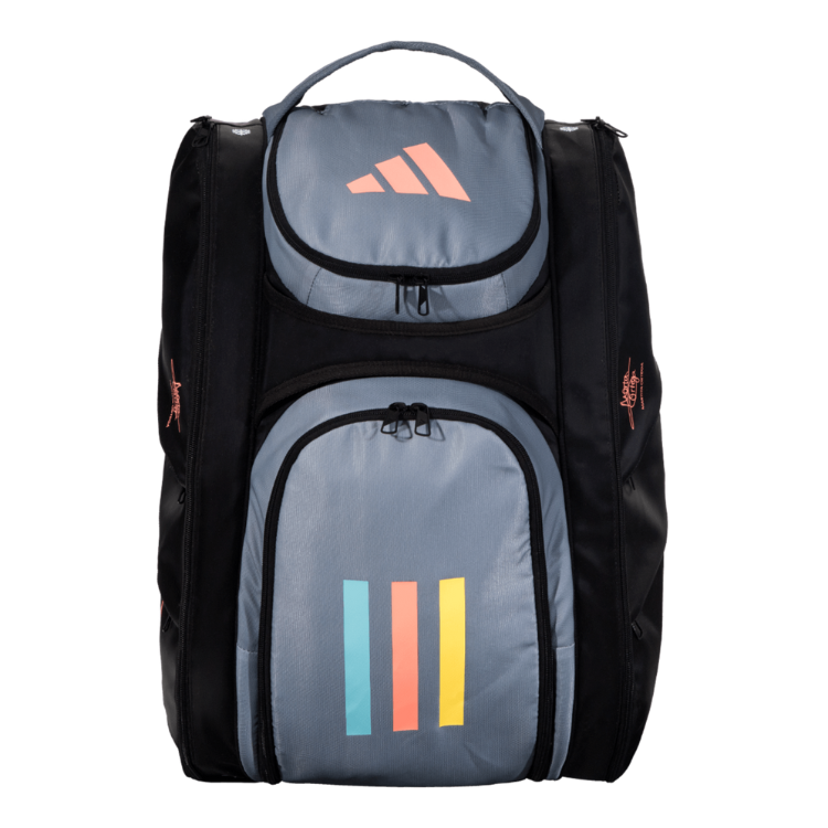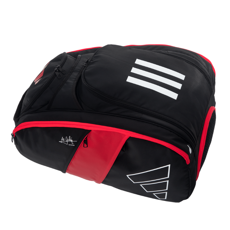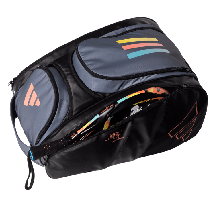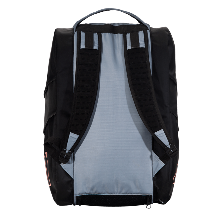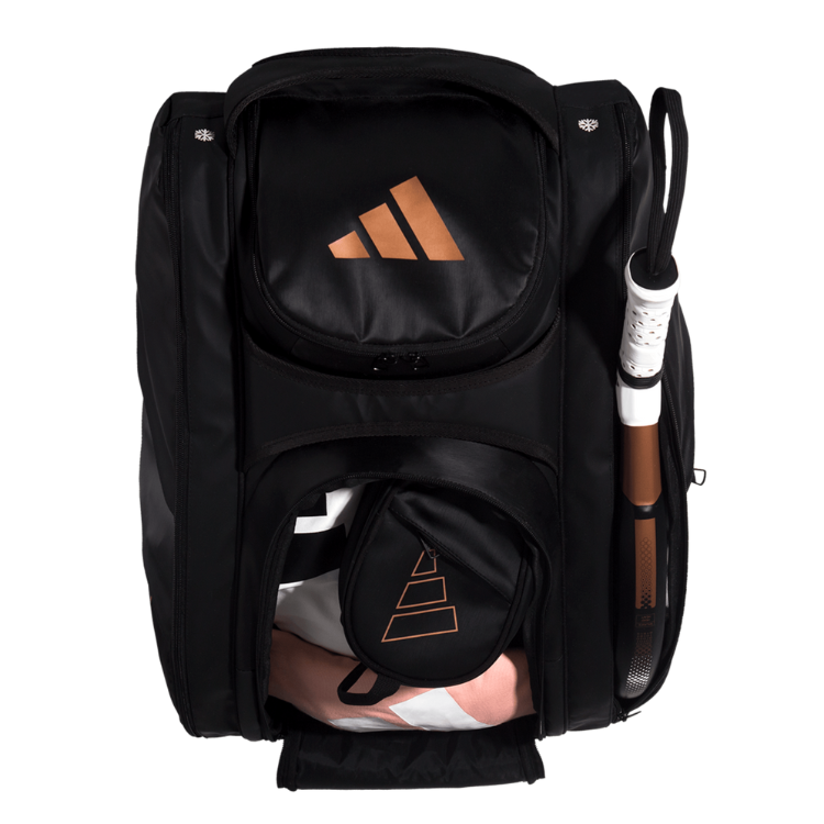 La capacidad es uno de los puntos fuertes de este paletero preparado para cargar con hasta 10 palas. Los apartados laterales están hechos para llevarlas sujetas y aislarlas térmicamente para evitar su deterioro. En el compartimento principal hay espacio para todo. Y en los cuatro bolsillos exteriores, para los objetos más pequeños. Las zapatillas tienen también su lugar hecho de tejidos transpirables. Todo tiene su sitio y está fabricado con los mejores materiales en cuanto a calidad y durabilidad.